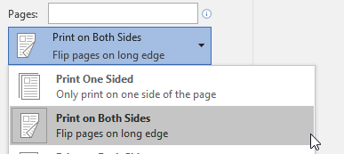 - When printing from Word, Excel, Powerpoint, or Outlook, select “Print on Both Sides” from the Print menu: