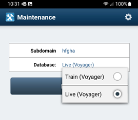 - Tap the word Train (Voyager) in the Database field, then select Live(Voyager)