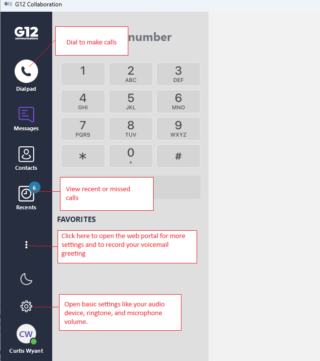 You’ll use the “G12 Collaboration” app on your computer to make calls. The “Mitel Connect” app will be removed. The G12 Collaboration app will auto-start when you login to your computer, but you can also open it using the desktop shortcut: